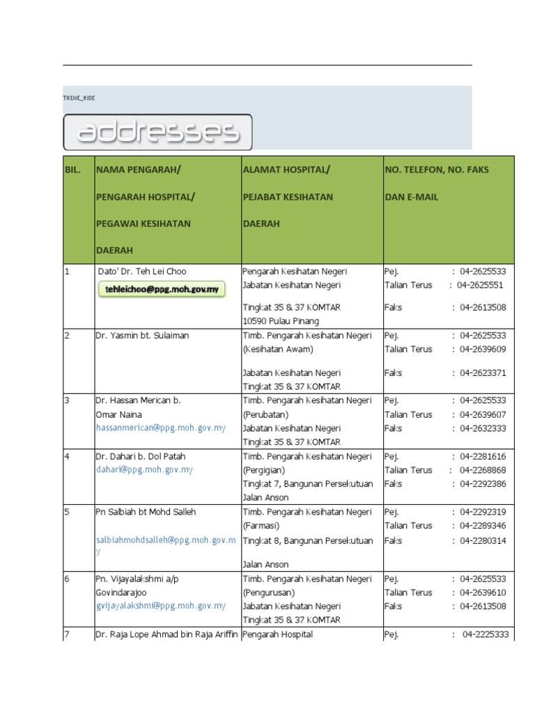 Laman web jabatan kesihatan negeri pulau pinang. Pengarah kesihatannya, datuk dr zailan adnan menegaskan larangan termasuk mengenakan tindakan. Pejabat kesihatan daerah seberang perai tengah. Below are the contact details for pulau pinang state health department. Jabatan kesihatan negeri, pejabat rkpbv negeri pulau pinang.