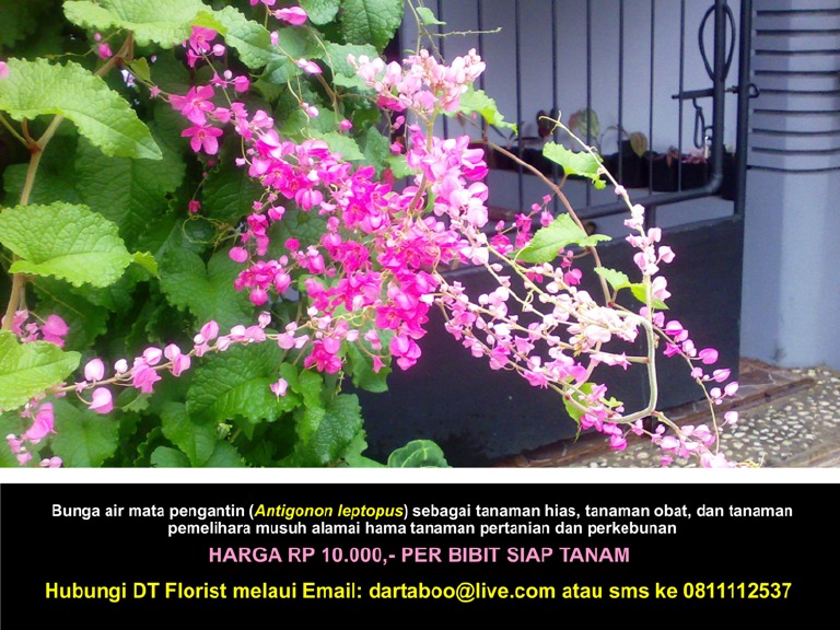 Air Mata Pengantin - Jual Bibit Bunga Air Mata Pengantin 082332224620 | Gudang ... / Tanaman ini termasuk ke dalam suku polygonaceae dan berasal dari kawasan amerika tengah.. Ulasan (1) antigonon atau air mata pengantin, disebut juga coral vine, merupakan tumbuhan liana (tanaman merambat berkayu) yang berasal dari wilayah amerika tengah, utamanya meksiko. Pada masa kolonial belanda, air mata pengantin menjadi penghias taman dan pekarangan.tumbuhan ini dapat dengan cepat tumbuh dan menjadi gulma. P asaran kelulut yang makin meluas di malaysia membuatkan ramai pengusaha baru yang ingin menceburkan diri dalam perusahaan lebah jenis tidak menyengat ini. Air mata pengantin merupakan tumbuhan merambat atau memanjat. Bunga air mata pengantin memiliki nama lain yaitu coral vine, chain of love dan mexican creeper.